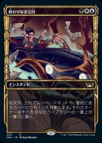 今日はこちら。 斡旋屋一家の疑似除去。 対象の呪文か土地でないパーマネントか墓地にあるカード1枚をオーナーのライブラリートップかボトムに戻させます。 昨日3マナの除去でしかない虚空裂きは弱いという話をしました。 このカードも一応同様に単体では1:1…