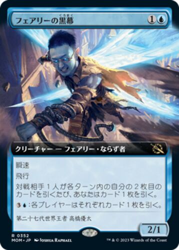 今日はこちら。 機械兵団の進軍で登場する青2マナ2/1瞬速、飛行のフェアリー・ならず者。 対戦相手が各ターンで2枚目のカードを引くたびカードを引ける能力と、(3)(青)で各プレイヤーにカードを1枚引かせる能力を持っています。 フレイバーテキストにもある…
